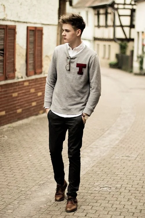 i like the idea of this look. i wish the sweater was vneck and he was wearing a foulard tie though. Taylor CampJuly 6, 2014Menswear, Men's fashion, Mens Fashion, fashion, style Facebook0 Twitter Tumblr 0 Likes