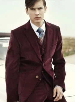 maroon suit.