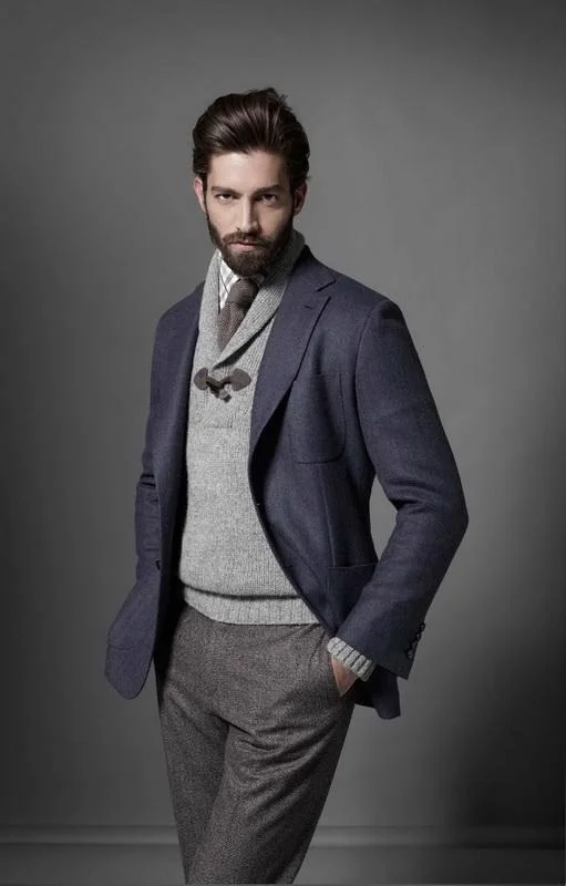 this is such an INCREDIBLE look. not only a perfect use of grey but such an awesome sweater! does anyone what collection this is from? amazing!